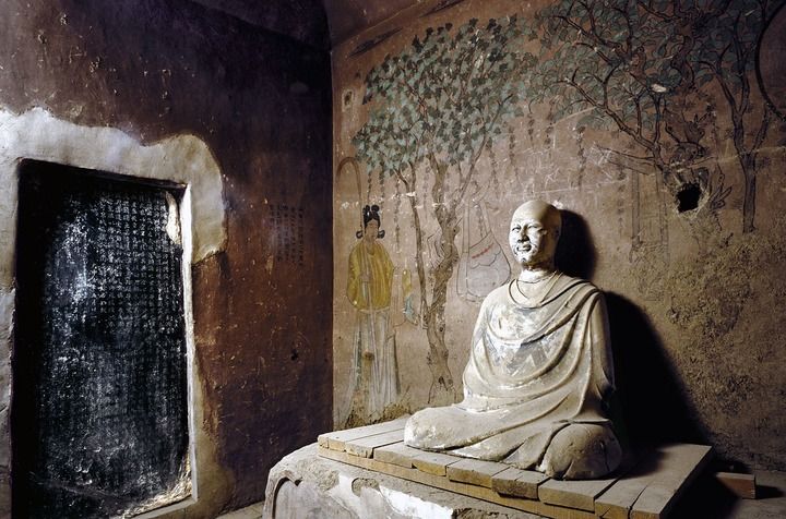 莫高窟第17窟是举世闻名的藏经洞。1900年,这里石破天惊,出土数万件文物,“国际显学”敦煌学也由此发轫。如今来到第17窟,眼前是一身作禅修状的僧人塑像。人们不禁发问,他是谁?