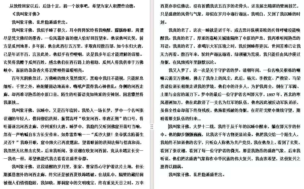 文章以“象牙佛”的视角,娓娓道来了从唐代玄奘法师赐予瓜州,历经吐蕃时期、归义军光复、西夏统治、明清更迭,直至近现代在道士、喇嘛、普通百姓乃至红军支持者郭元亨等人接力守护下,于新中国重见天日的跌宕历程。它既是一部浓缩的河西走廊文物守护史,也是一曲跨越时空的守护者赞歌。文末“我叫象牙佛,乱世隐遁盛世出”的慨叹,与捐赠人“希望为家人积攒些功德”的朴素心愿交织,最终凝聚为对文明永续、岁月安澜的美好期许。